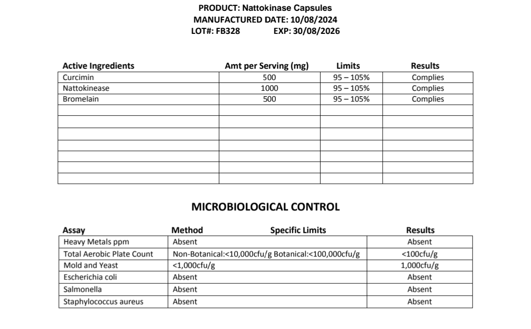 - Supporting Circulatory Health: Nattokinase and bromelain assist in breaking down abnormal blood clots, improving circulation, and addressing symptoms like fatigue and brain fog.