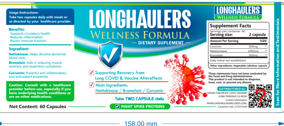 With lingering fatigue, brain fog, joint pain, or other persistent symptoms, finding effective support is essential. The Long Haulers Wellness Formula is designed to provide natural relief through a combination of Nattokinase, Bromelain, and Curcumin—each chosen for their unique abilities to support your health. This blend works to reduce inflammation, improve circulation, and assist immune balance, supporting your body’s natural healing process.
